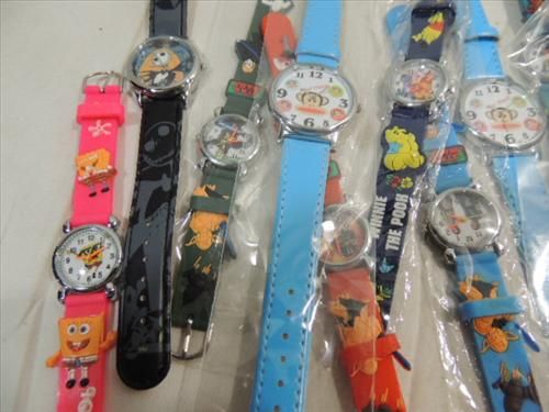 LOT 16 CHILDS QUARTZ WRIST WATCHES: TOPICAL - MICKEY MOUSE, SPONGE BOB, TRANSFORMERS. AS SHOWN. VIEW PICTURE FOR DETAIL.