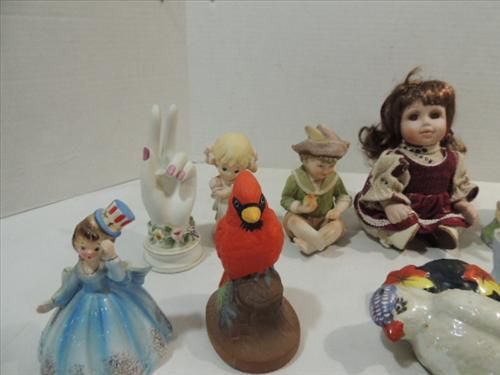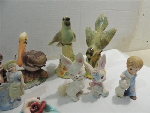 LOT 16 VINTAGE PORCELAIN & CERAMIC FIGURINES & BIRDS. GREAT SELECTION OF ASSORTED COLLECTIBLES. LEFTON, HOMCO. AS SHOWN. VIEW PICTURE FOR DETAIL.