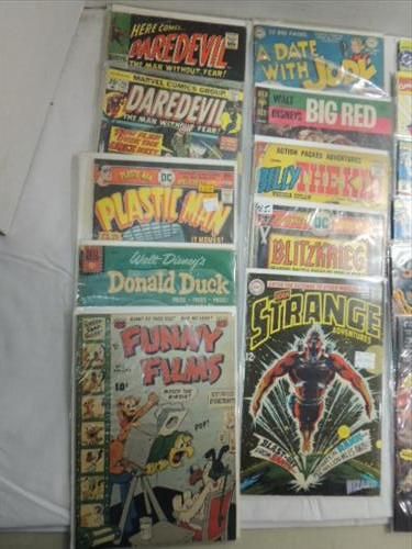 LOT 16 SILVER AGE MARVEL, DC, DELL & MORE COMIC BOOKS. DAREDEVIL, PLASTICMAN, DONALD DUCK, FUNNY FILMS, BIG RED AND MORE. AS SHOWN. VIEW PICTURE FOR DETAIL.