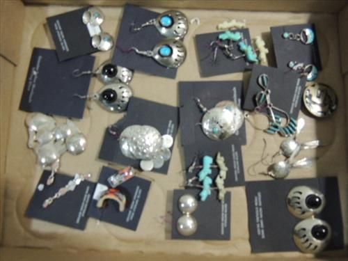 LOT 16 STERLING SILVER & TURQUOISE NATIVE AMERICAN EARRINGS. AS SHOWN. VIEW PICTURE FOR DETAIL.