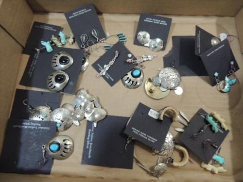 LOT 16 STERLING SILVER & TURQUOISE NATIVE AMERICAN EARRINGS. AS SHOWN. VIEW PICTURE FOR DETAIL.