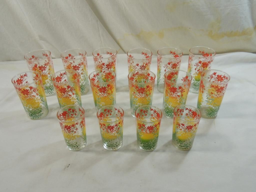 ASSORTED SIZES SWANKY SWIGS GREAT SET FLORAL DESIGN MULTI COLORED RED YELLOW GREEN VINTAGE COLLECTIBLE GLASSWARE AS SHOWN SEE PHOTO FOR MORE DETIALS