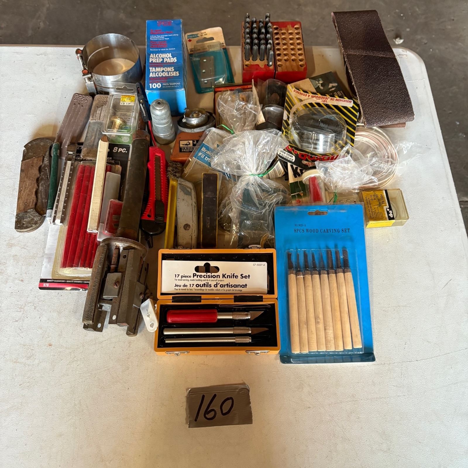 wood carving set, letter punches, precision knife set, engine honing tool, ring compressor
