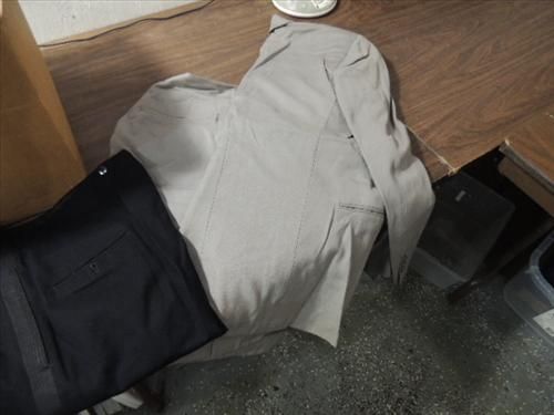 LOT 17 (14) VINTAGE MENS DRESS PANTS & 3 SUIT COATS. CIRCA 1950S & 60S. AS SHOWN. VIEW PICTURE FOR DETAIL.