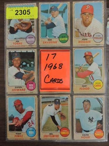 LOT 17 1968 TOPPS BASEBALL PLAYER CARDS. AS SHOWN. VIEW PICTURE FOR DETAIL.