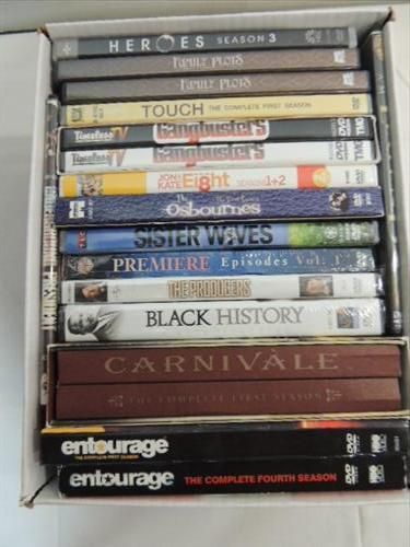 LOT 17 DVD COLLECTION OF TELEVISION SERIES: HEROES, FAMILY PLOTS, CARNIVALE, ENTOURAGE AND MORE. AS SHOWN. VIEW PICTURE FOR DETAIL.