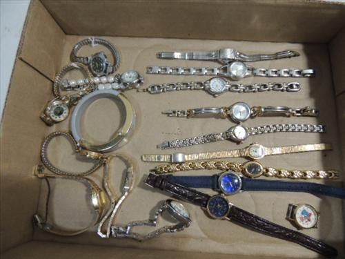LOT 17 LADY QUARTZ WRIST WATCHES: GOLD & SILVER TONE. NICE SELECTION. AS SHOWN. VIEW PICTURE FOR DETAIL.