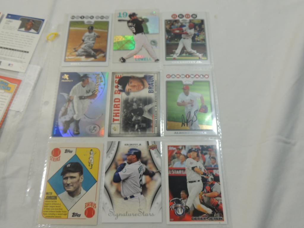 BASEBALL CARDS. COLLECTIBLE CARDS. GOOD CONDITION. GREAT VALUE. PROTECTIVE SHEET. SPORTS MEMORABILIA. AS SHOWN SEE PHOTO FOR MORE DETAILS.