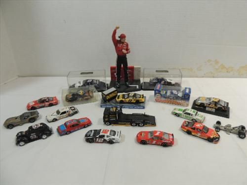 LOT 18 ASSORTED DIE CAST METAL NASCAR RACE CARS. 1/64 SCALE? 2004 MCFARLANE NASCAR ACTION FIGURINE EARNHARDT. AS SHOWN. VIEW PICTURE FOR DETAIL.
