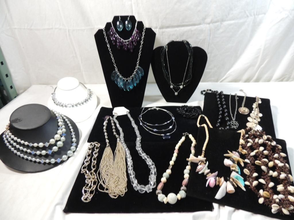 GOLDTONE SILVERTONE NEWER AND VINTAGE COSTUME JEWELRY FASHION JEWELRY BEADED AS SHOWN SEE PHOTO FOR MORE DETAILS.