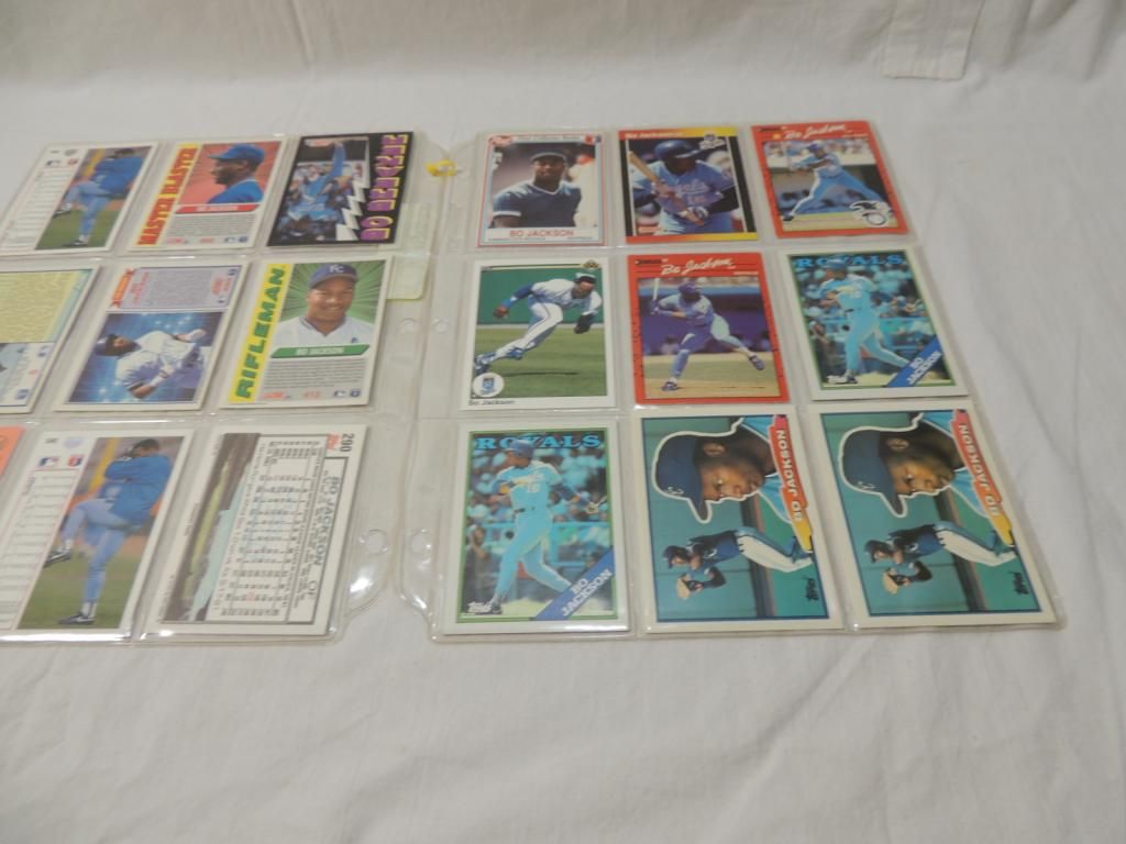 LOT 18 BO JACKSON BASEBALL CARDS MIXED MAKERS AND YEARS. AS SHOWN. SEE PHOTO FOR MORE DETAILS.