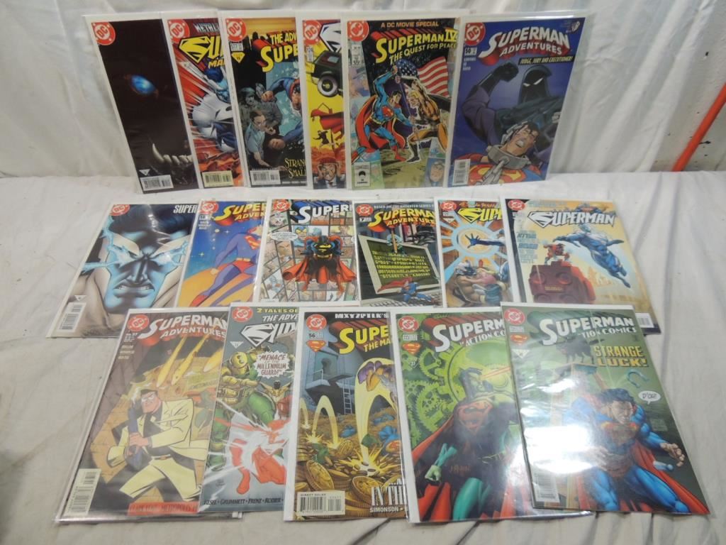 DC COMICS SUPERMAN COMICS, SUPER HERO COMICS, VINTAGE COMICS, COLLECTIBLE COMICS, PROTECTIVE PLASTIC & CARDBOARD, GOOD CONDITION COMICS, COLLECTORS COMICS, AS SHOWN SEE PHOTO FOR MORE DETAILS