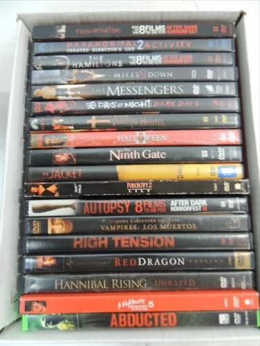 LOT 18 DVD HORROR & DRAMA MOVIES: MESSENGERS, NINTH GATE, POISON IVY 2, HIGH TENSION AND MUCH MORE. AS SHOWN. VIEW PICTURE FOR DETAIL.
