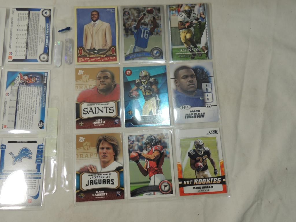 FOOTBALL PLAYER CARDS. TRADING CARDS. COLLECTIBLE. IN GOOD CONDITION. BINDER SHEETS. AS SHOWN SEE PHOTO FOR MORE DETAILS