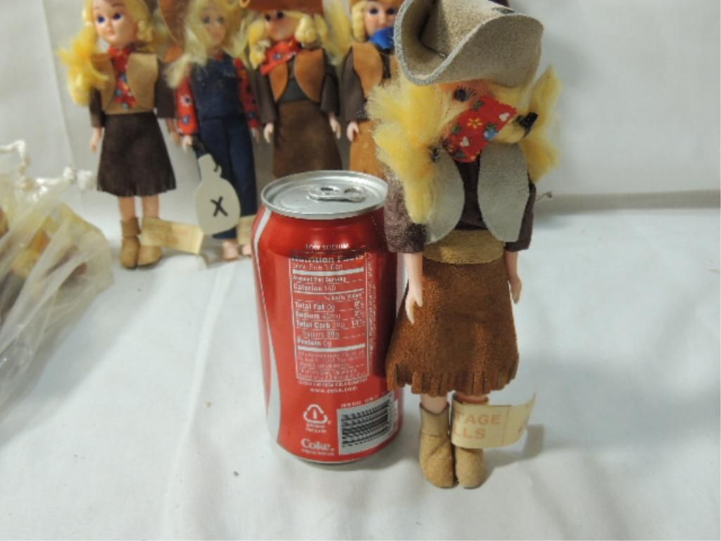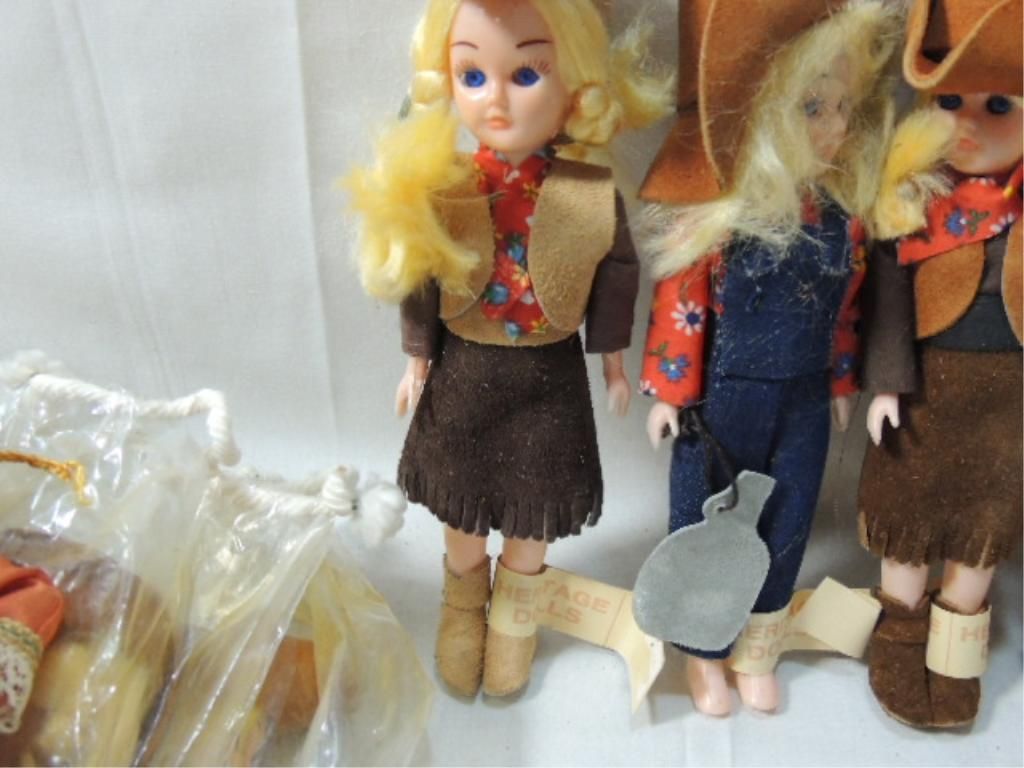 ASSORTED HERITAGE DOLLS. APPROX 7 1/2" TALL. AS SHOWN. SEE PHOTO FOR MORE DETAILS.