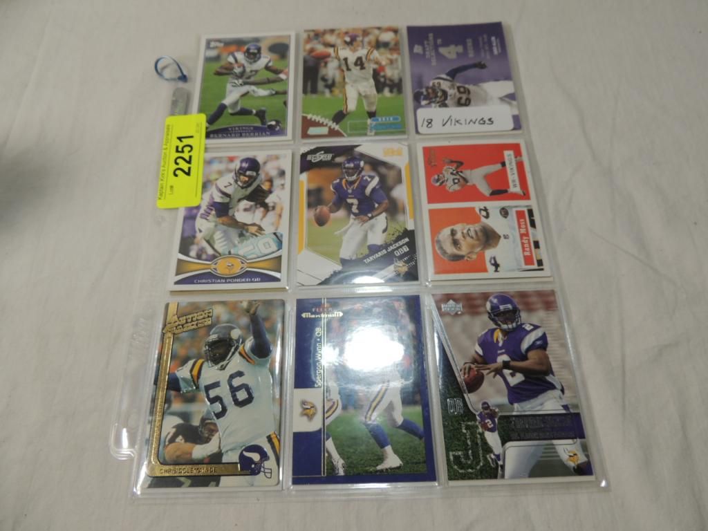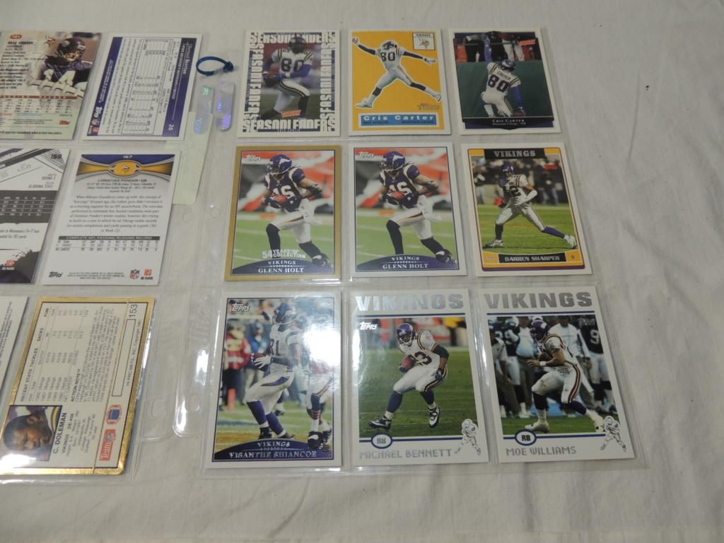 MIXED MAKERS AND YEARS. ALL VIKINGS PLAYERS. FOOTBALL PLAYER CARD. TRADING CARD. FOOTBALL COLLECTIBLE. CARD IN GOOD CONDITION IN BINDER SHEET. AS SHOWN. SEE PHOTO FOR MORE DETAILS.