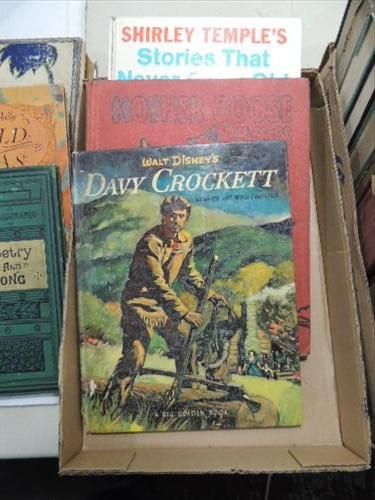 LOT 18 VINTAGE 1890S TO 1940S HISTORY & STORY BOOKS. WALT DISNEY DAVY CROCKETT, MOTHER GOOSE, HERITAGE OF AMERICA, HISTORY OF OUR COUNTRY AND MORE. AS SHOWN. VIEW PICTURE FOR DETAIL.