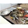 LOT 18 VINTAGE METAL COLLECTIBLES: 5 ASSORTED BELLS, 4 BRASS & COPPER BOWLS, CHROME CANDY TRAY, SLEIGH BELLS, LANTERN PENCIL SHARPENER AND MORE. AS SHOWN. VIEW PICTURE FOR DETAIL.