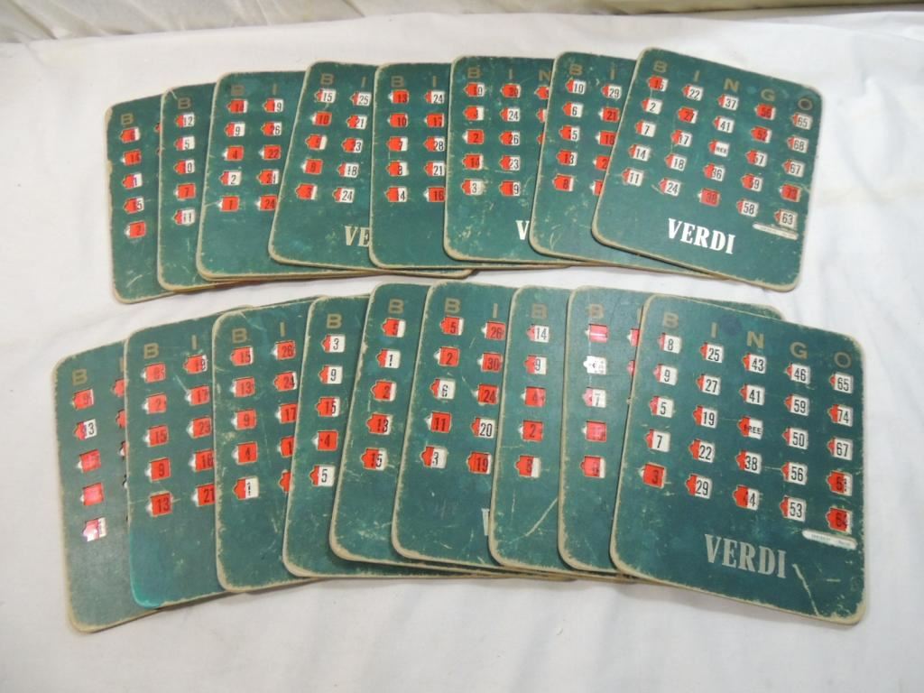 VERDI BINGO CARDS SLIDE MARKERS VINTAGE CARDS GAMING CARDS COLLECTIBLE AS SHOWN SEE PHOTO FOR MORE DETAILS.