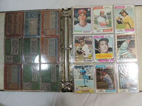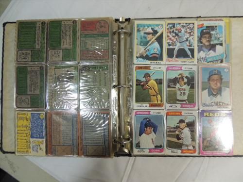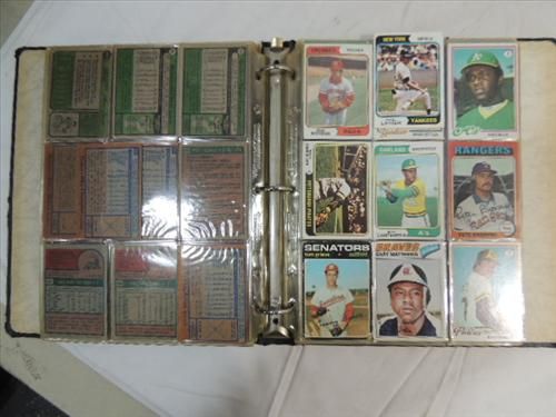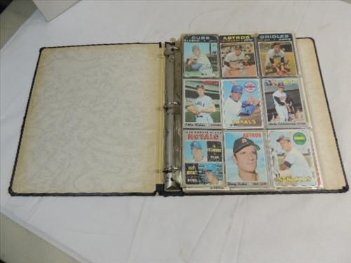 LOT 198 1970S TOPPS BASEBALL PLAYER CARDS. IN RING BINDER. AS SHOWN. VIEW PICTURE FOR DETAIL.