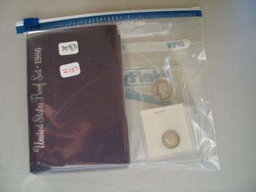 LOT, 1986, 1987, 1990 PROOF SETS, (3) HALF DOLLARS, (2) QUARTERS & (1) MERCURY DIME