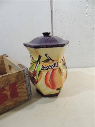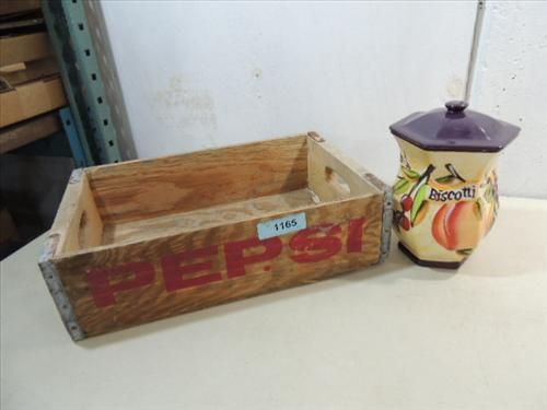 LOT 2 (1) VINTAGE PEPSI-COLA WOOD 24 BOTTLE CRATE & CERAMIC COOKIE JAR. AS SHOWN. VIEW PICTURE FOR DETAIL.
