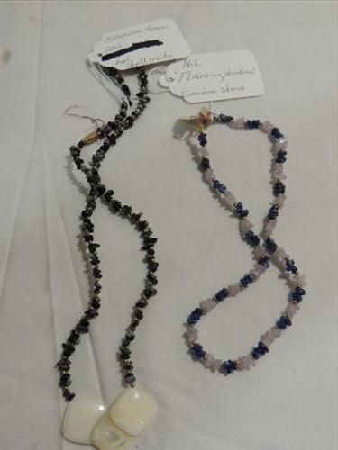 LOT 2 16" & 20"L OBSIDEN & AMETHYST STONE NECKLACES. AS SHOWN. VIEW PICTURE FOR DETAIL.