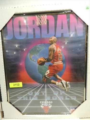 LOT 2 16X20 MICHAEL JORDAN FRAMED POSTERS. AS SHOWN. VIEW PICTURE FOR DETAIL.