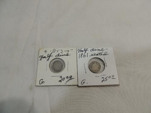 LOT 2 1853 (ARROWS) & 1861 (G) SEATED HALF DIMES. AS SHOWN. VIEW PICTURE FOR DETAIL.