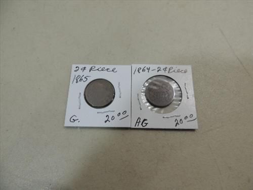 LOT 2 186 & 65 CIRCULATED 2 CENT COPPER PIECE. AS SHOWN. VIEW PICTURE FOR DETAIL.