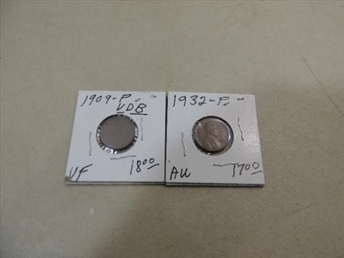 LOT 2 1909 VDB (VF) & 1932 (AU) LINCOLN WHEAT PENNIES. AS SHOWN. VIEW PICTURE FOR DETAIL.