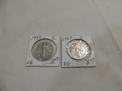 LOT 2 1928-S (VG) & 35-S (VG) WALKING LIBERTY HALF DOLLAR. AS SHOWN. VIEW PICTURE FOR DETAIL.
