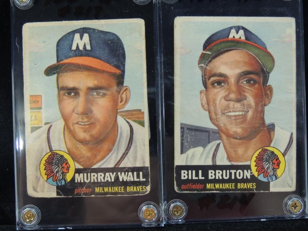 BILL BRUTON #214, MURRAY WALL #217. BASEBALL PLAYER CARDS. BASEBALL TRADING CARDS. VINTAGE CARDS. AS SHOWN. SEE PHOTO FOR MORE DETAILS.