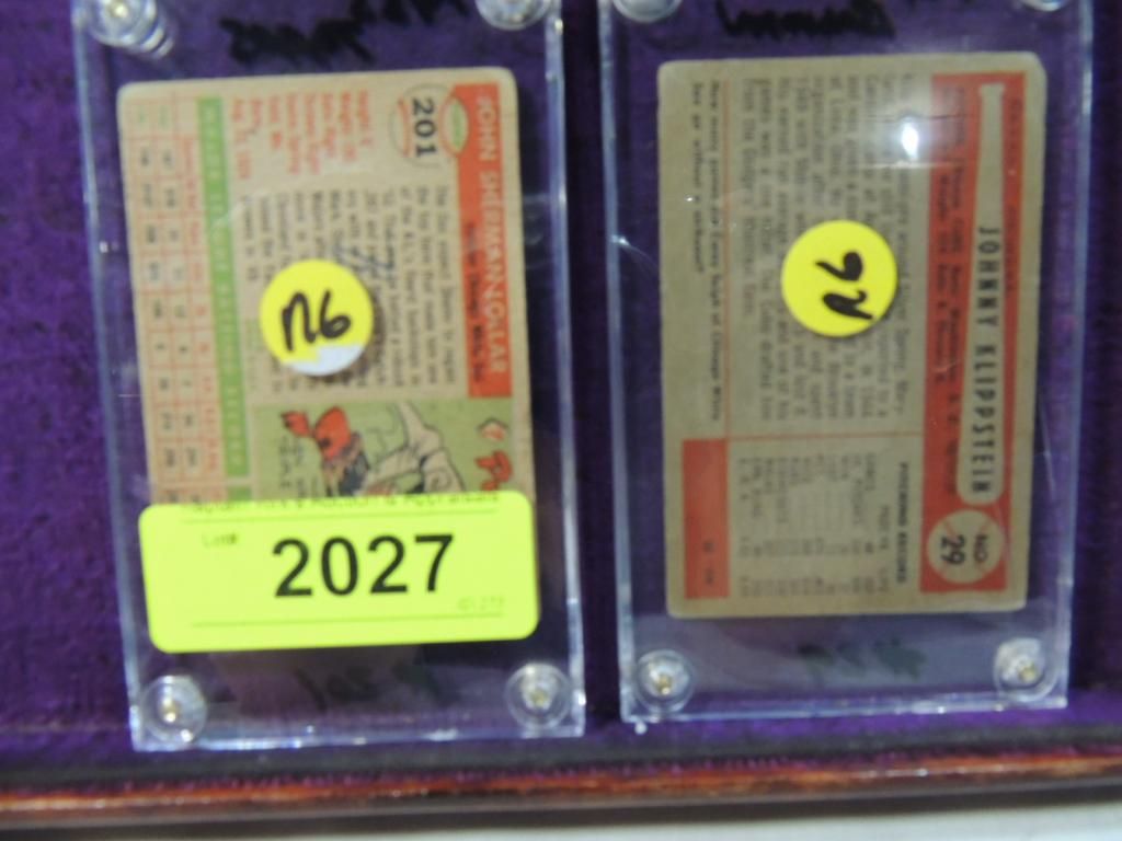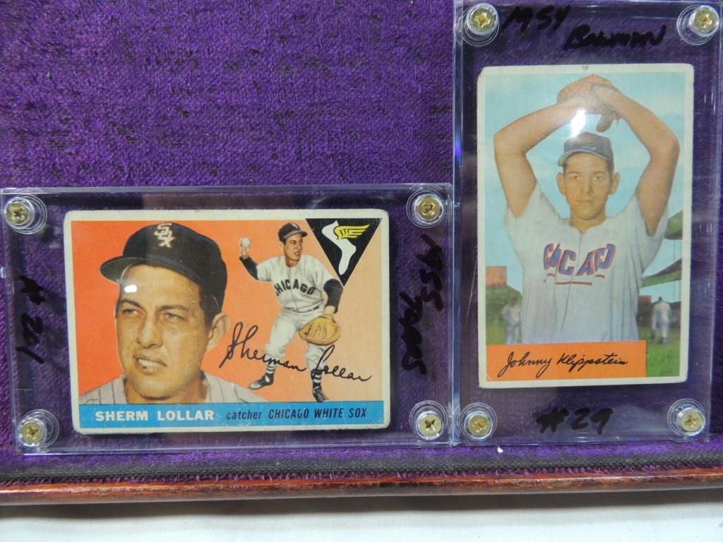 1954 BOWMAN JOHNNY KLIPPSTEIN #29 & 1955 TOPPS SHERM LOLLAR #201. BASEBALL PLAYER CARDS. BASEBALL TRADING CARDS. VINTAGE CARDS. AS SHOWN. SEE PHOTO FOR MORE DETAILS.