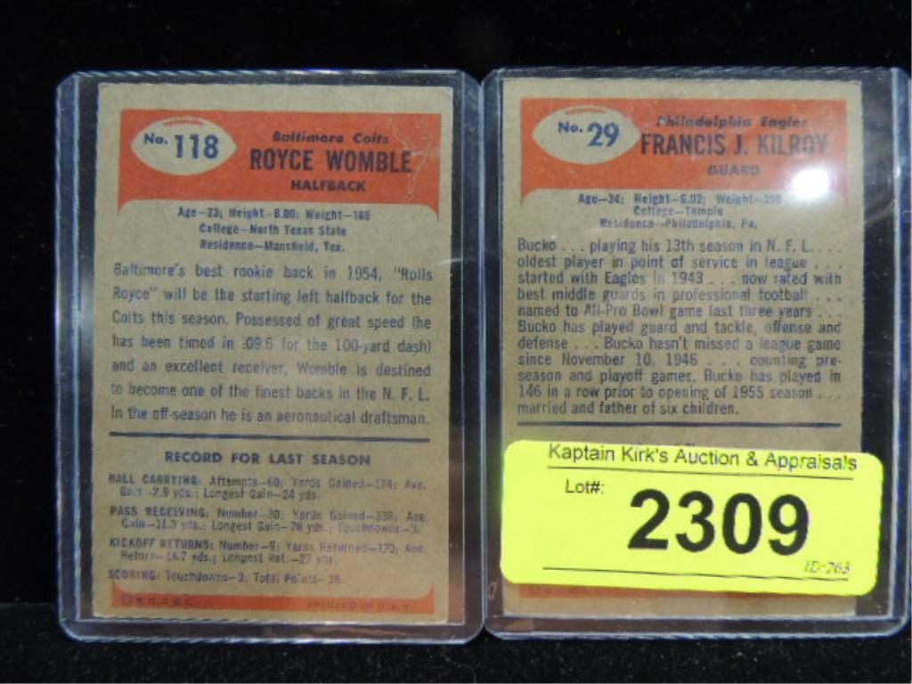 1955 ROYCE WOMBLE ROOKIE CARD & FRANCIS KILROY FOOTBALL PLAYER CARD. FOOTBALL PLAYER CARD. FOOTBALL TRADING CARD. AS SHOWN. SEE PHOTO FOR MORE DETAILS.