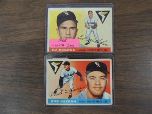 LOT 2 1955 TOPPS #10 & 32 BASEBALL PLAYER CARDS: MCGHEE & KEEGAN. AS SHOWN. VIEW PICTURE FOR DETAIL.
