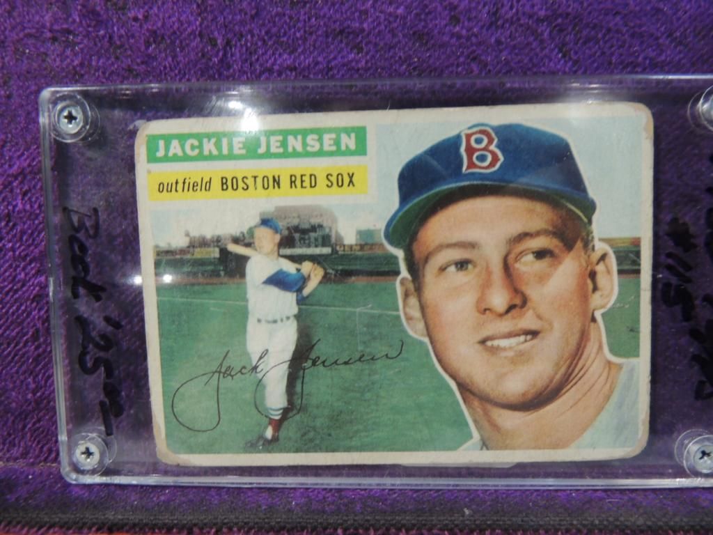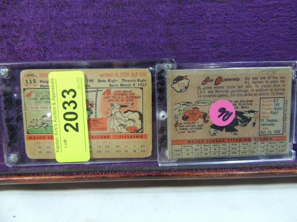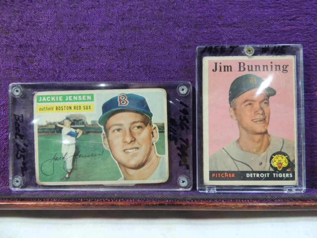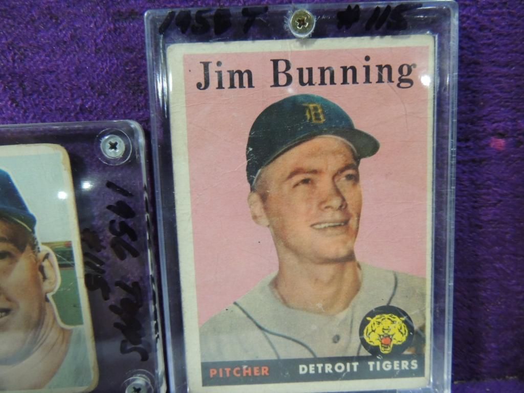 1958 TOPPS JIM BUNNING #115, 1956 TOPPS JACKIE JENSEN #115 BASEBALL PLAYER CARD. TRADING CARD. AS SHOWN. SEE PHOTO FOR MORE DETAILS.