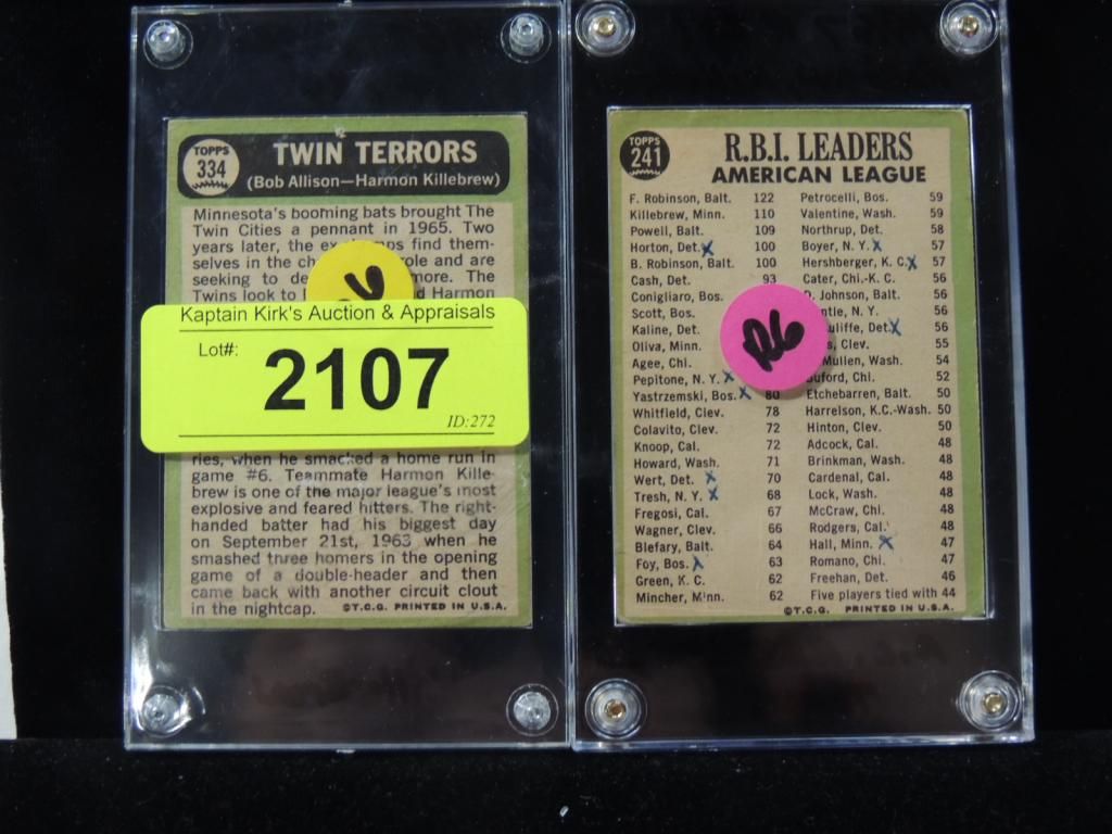 1967 TOPPS A.L RBI LEADERS ROBINSON, KILLEBREW. 1967 TOPPS TWIN TERRORS KILLEBREW ALLISON #334BOB ALLISON & HARMON KILLEBREW TWIN TERRORS #334 BASEBALL PLAYER CARDS. BASEBALL TRADING CARDS. VINTAGE CARDS. AS SHOWN. SEE PHOTO FOR MORE DETAILS.