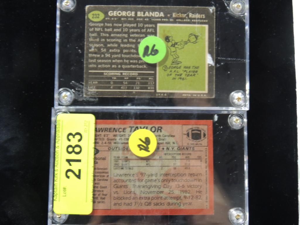 1983 LAWRENCE TAYLOR #133 & 1969 GEORGE BLANDA #232 FOOTBALL PLAYER CARD. FOOTBALL TRADING CARD. AS SHOWN. SEE PHOTO FOR MORE DETAILS