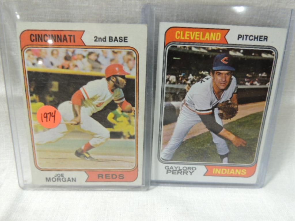 LOT 2 1974 TOPPS BASEBALL PLAYERS CARDS GAYLORD PERRY JOE MORGAN. SEE PICTURE FOR DETAILS.