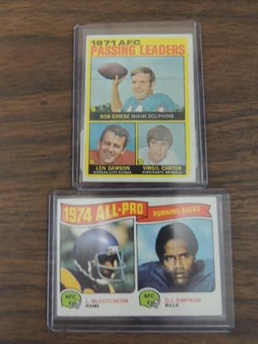 LOT 2 1975 TOPPS #3, 209 FOOTBALL PLAYER CARDS: OJ SIMPSON, BOB GRIESE. AS SHOWN. VIEW PICTURE FOR DETAIL.