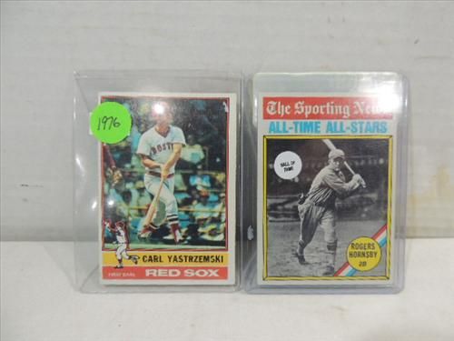 LOT 2 1976 TOPPS #230, 342 BASEBALL CARDS: ROGERS HORNSBY & CARL YASTRZEMSKI. AS SHOWN. VIEW PICTURE FOR DETAIL.