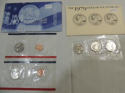 LOT 2 1979 (3 COINS)& 99 (2 COINS) ANTHONY DOLLARS US MINT SETS. AS SHOWN. VIEW PICTURE FOR DETAIL.