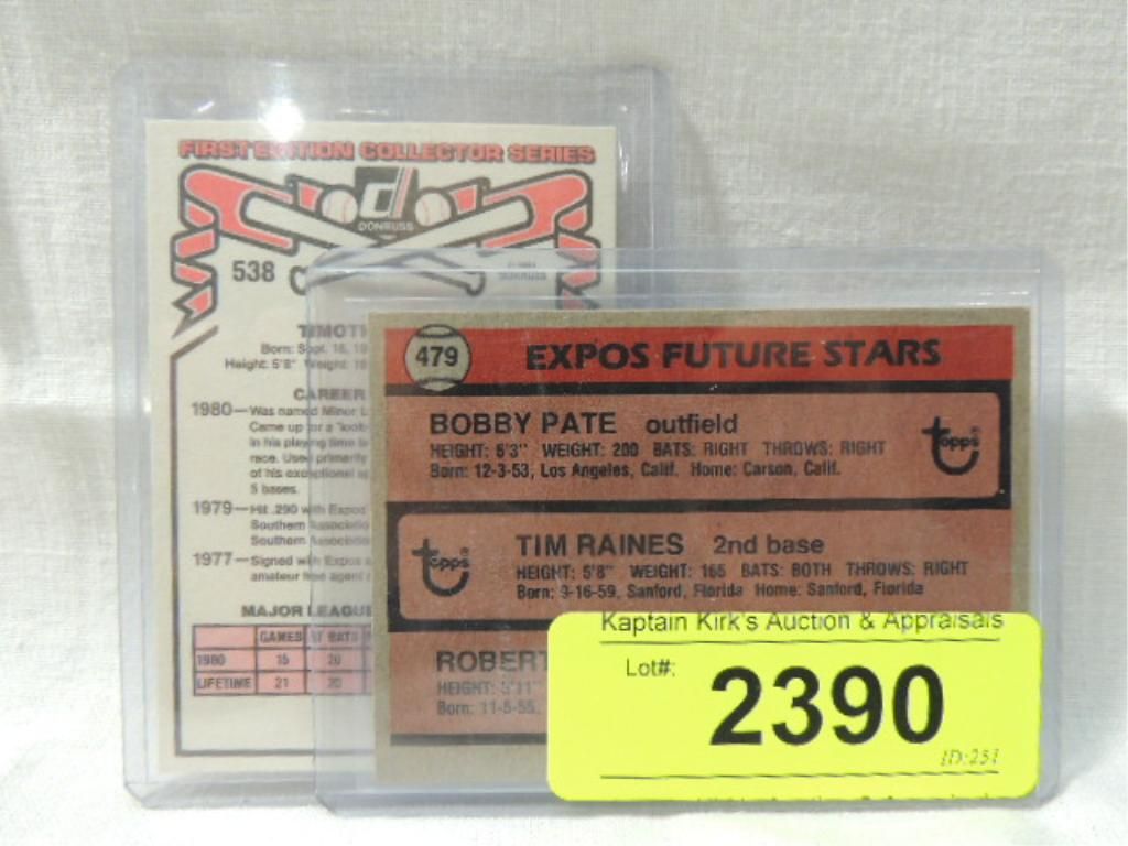LOT 2 1981 DONRUSS ROOKIE CARD TIM RAINES. TOPPS EXPOS FUTURE STARS CARD. SEE PICTURE FOR DETAILS.