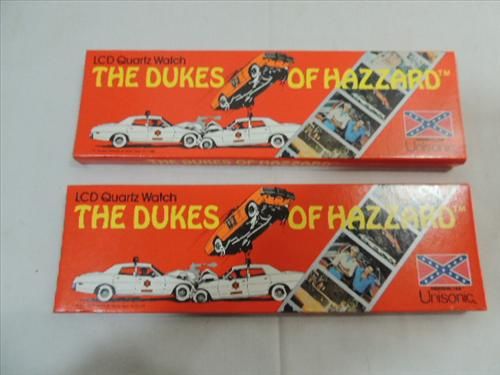 LOT 2 1981 THE DUKES OF HAZZARD QUARTZ WRIST WATCHES IN THE ORIGINAL BOX. AS SHOWN. VIEW PICTURE FOR DETAIL.