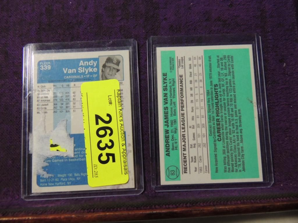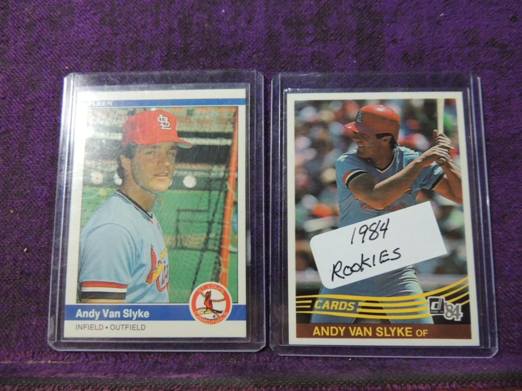 FLEER & DONRUSS ANDY VAN SLYKE ROOKIE BASEBALL PLAYER CARD. GOOD CONDITION. IN PROTECTIVE PLASTIC SLEEVE. BASEBALL PLAYER CARDS. BASEBALL TRADING CARDS. VINTAGE CARDS. AS SHOWN. SEE PHOTO FOR MORE DETAILS.