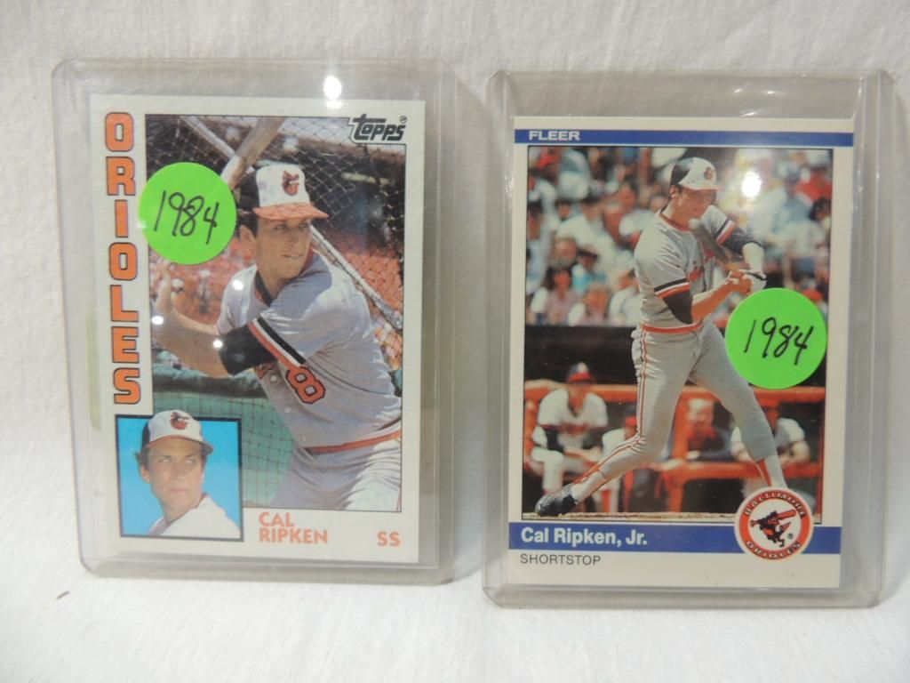 TOPPS & FLEER CAL RIPKEN JR BASEBALL PLAYER CARDS GOOD CONDITION. IN PROTECTIVE PLASTIC SLEEVE. BASEBALL PLAYER CARDS. BASEBALL TRADING CARDS. VINTAGE CARDS. AS SHOWN. SEE PHOTO FOR MORE DETAILS.