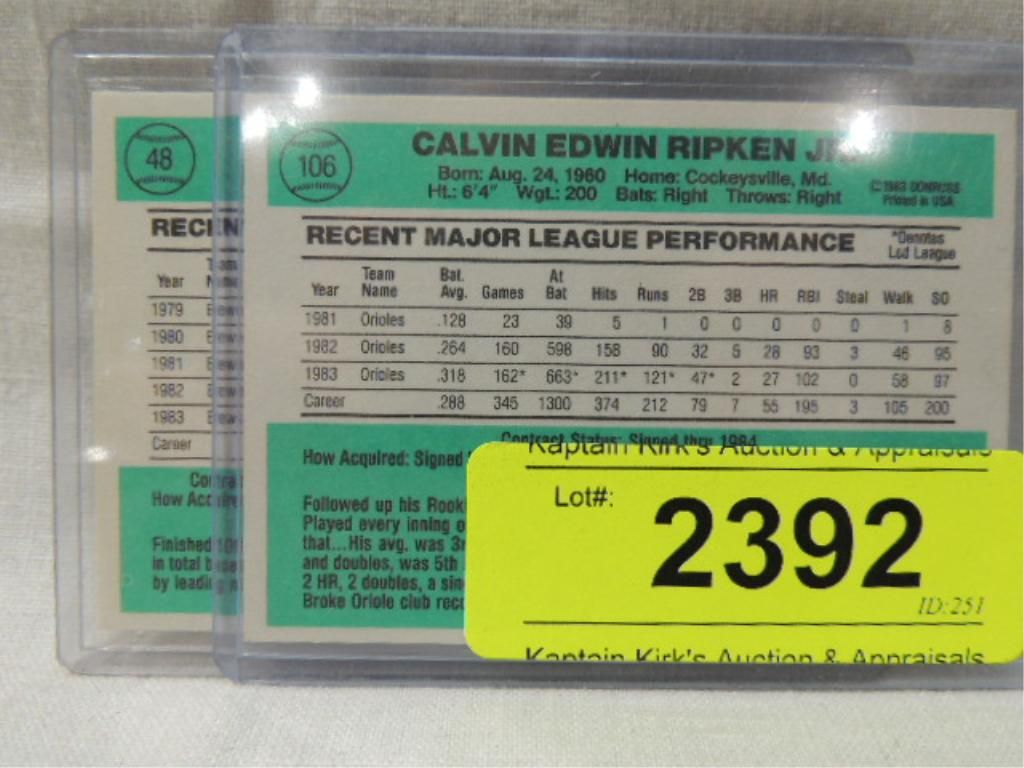 LOT 2 1984 DONRUSS BASEBALL PLAYER CARDS ROBIN YOUNT CAL RIPKEN