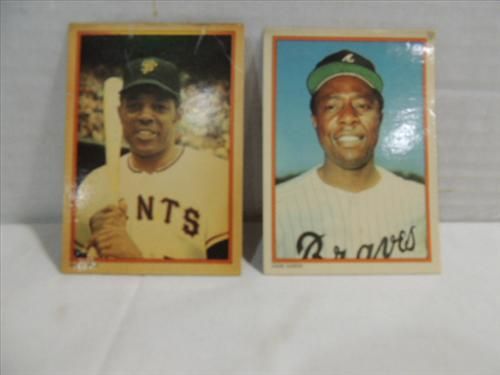 LOT 2 1985 CIRCLE K BASEBALL CARDS: WILLIE MAYS & HANK AARON. AS SHOWN. VIEW PICTURE FOR DETAIL.