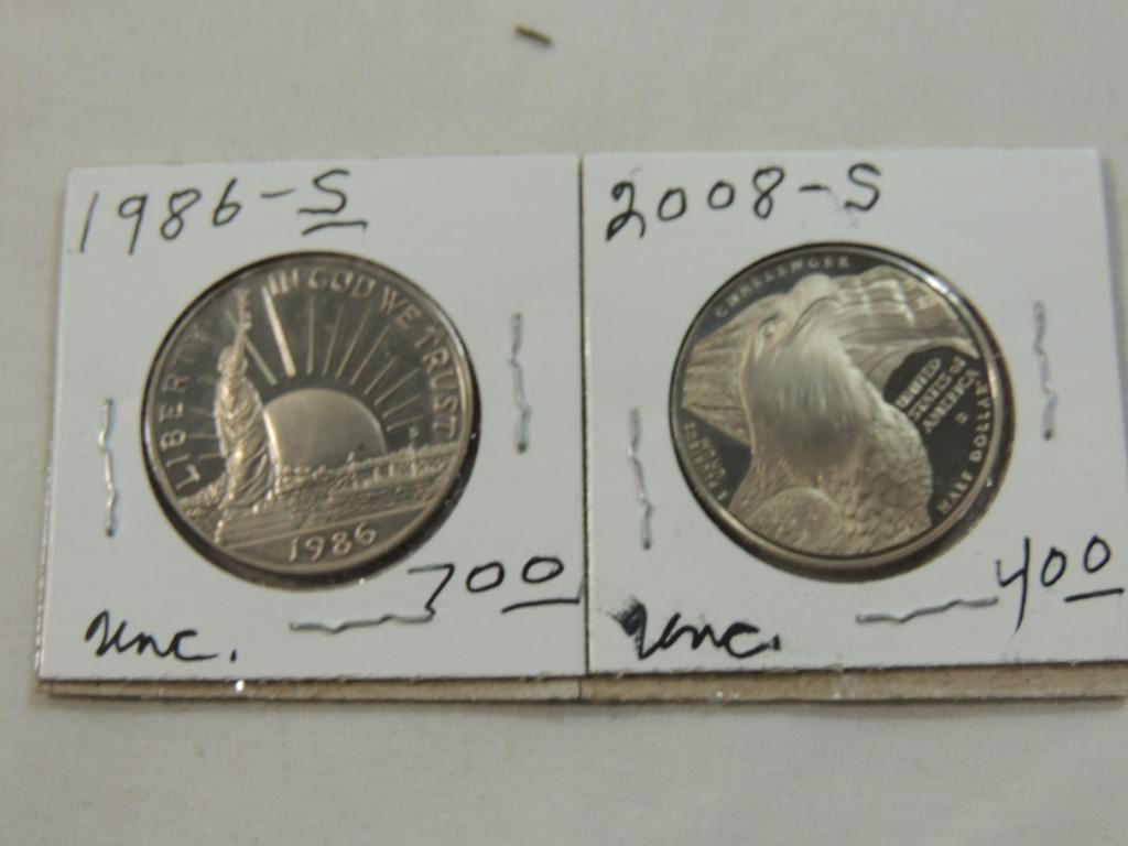 1986 HALF DOLLAR COIN & 2008 CHALLENGER HALF DOLLAR COIN COIN COLLECTIBLE CURRENCY COLLECTIBLE UNITED STATES CURRENCY US CURRENCY GOOD CONDITION HIGHLY COLLECTIBLE AS SHOWN SEE PHOTO FOR MORE DETAILS.